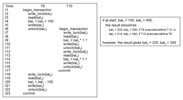 -> Serializability를 보장하기 위해선 lock을 걸고 unlock하는 시점에 대한 추가적인 규약이 필요.