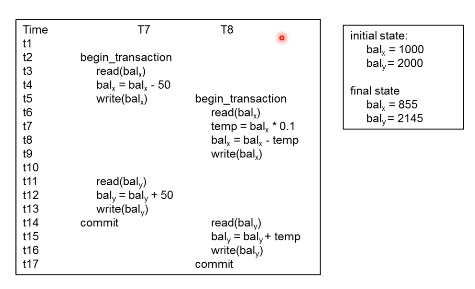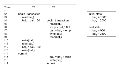- Nonserial Schedule : Concurrent transaction의 operation들이 interleaved된 schedule(중간에 다른 Transaction으로 왔다갔다 할 수 있는 schedule)
