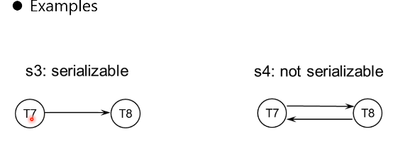 -> 만약 위와 같은 조건으로 precedence graph를 그렸을 때 cycle이 존재하지 않는다면 해당 schedule은 serializable하다.