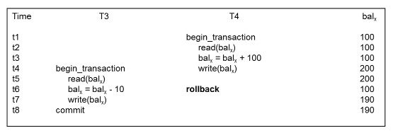 T4가 rollback 하기 전에 T3가 값을 읽어가서 잘못된 값이 read됨