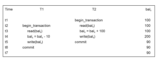T3는 balance를 10만큼 줄이고 싶고 T4는 100만큼 늘이려다 취소함. -> 원하는 결과 : 90이 되어야 함.