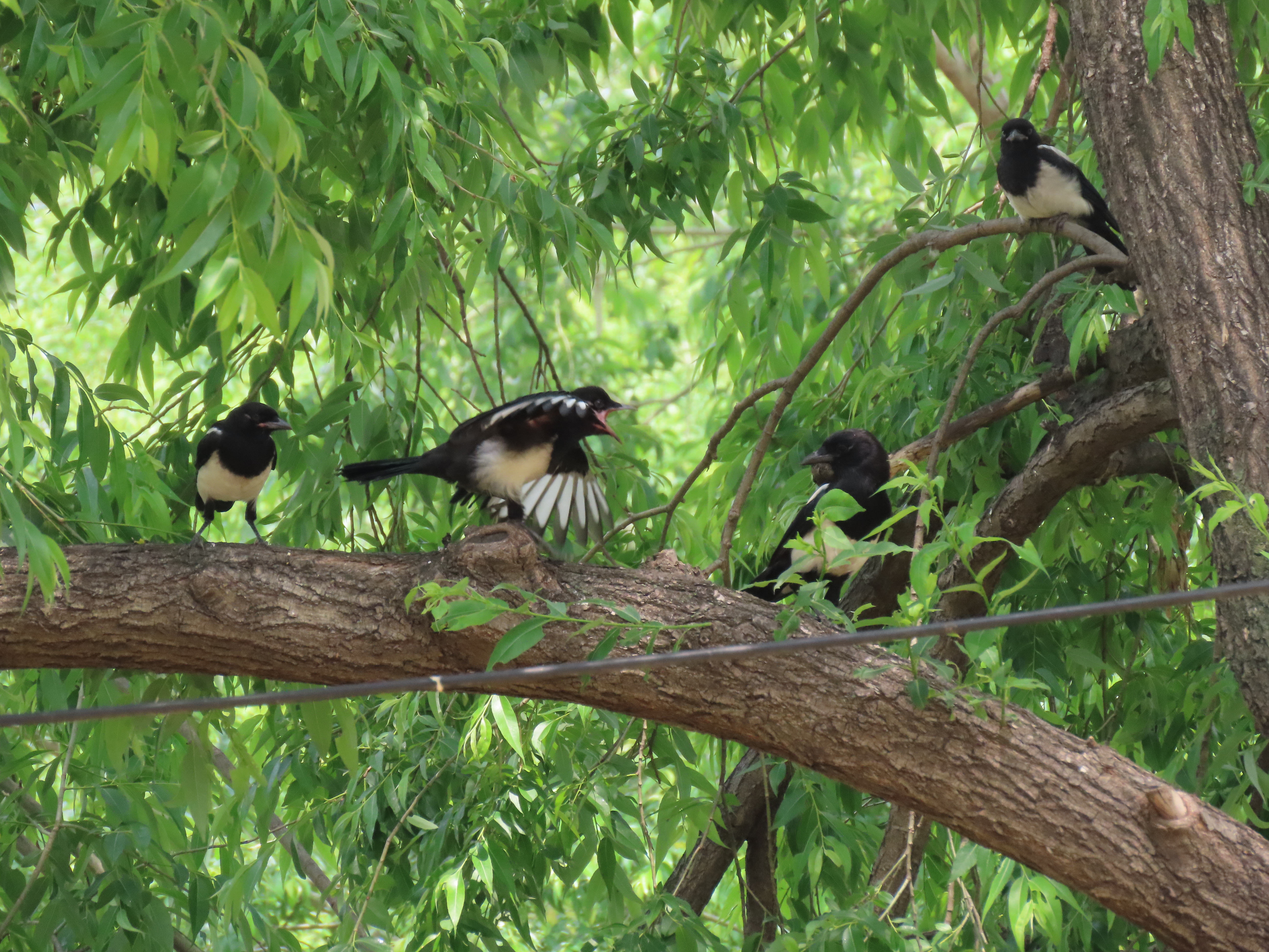 이렇게 튼튼한 둥지를 만들다보니 여름철에는 여러 새들이 이 둥지를 차지하겠다고 각축전을 벌이는 경우도 자주 보인다. 솔부엉이, 새호리기를 비롯한 파랑새나 꾀꼬리 등 한 성깔 하는 새들이 빈 둥지를 차지하겠다고 싸우는 모습도 여름철에는 자주 관찰할 수 있다.